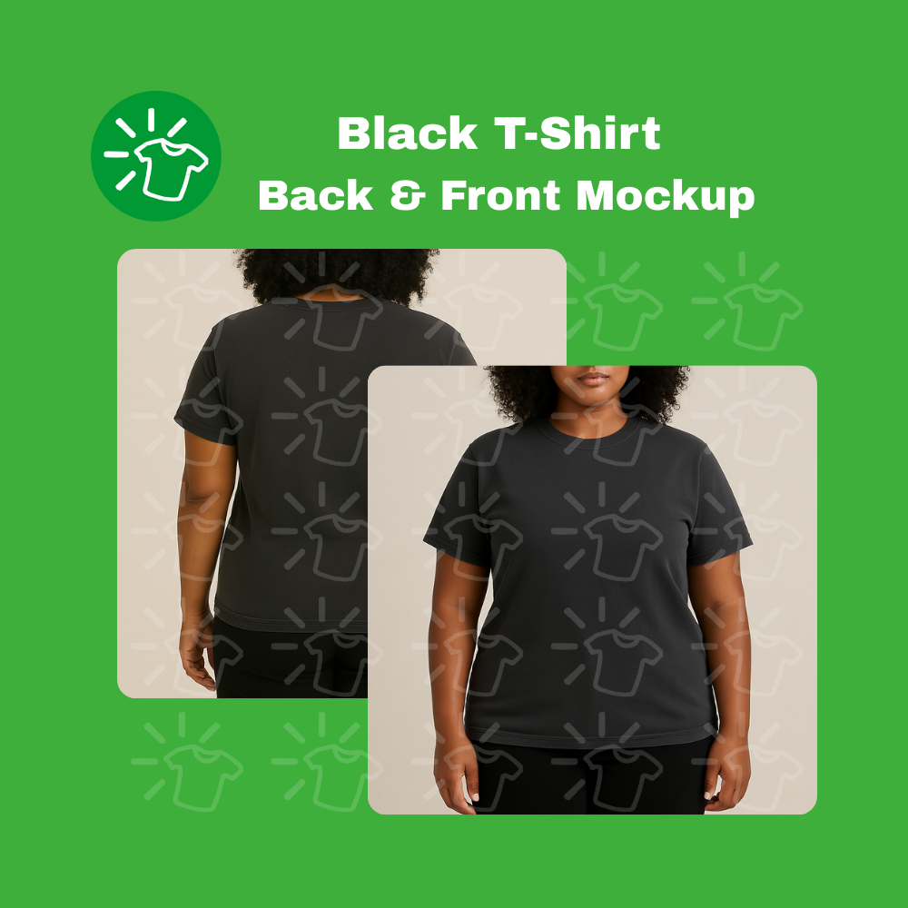 This mockup features a Tan model wearing a black Comfort Colors tee. You'll get front and back shots (1024x1024px) that show off that cool faded, vintage look Comfort Colors is known for. Perfect for dropping your designs on and showing customers how your stuff will actually look on real people!